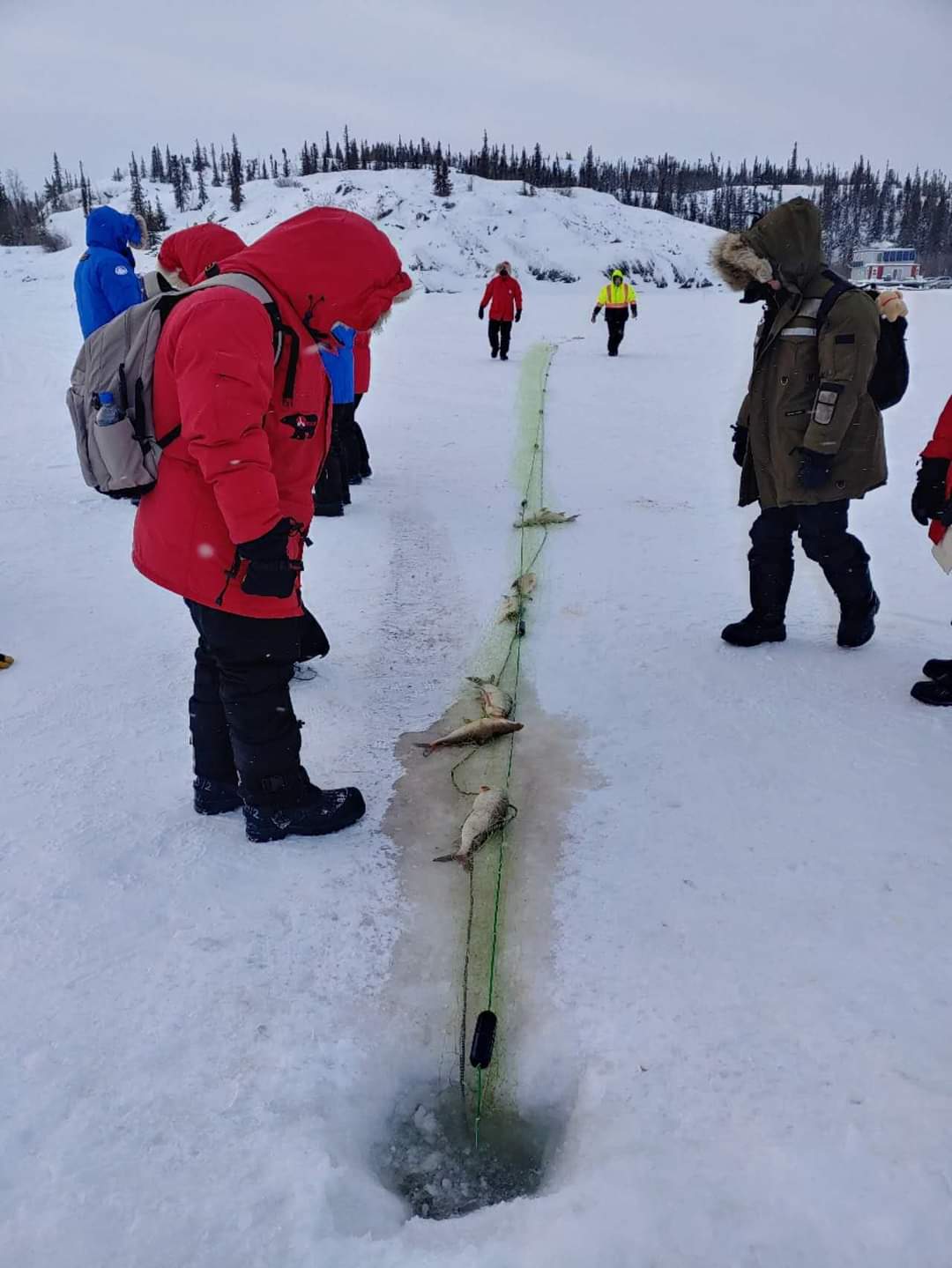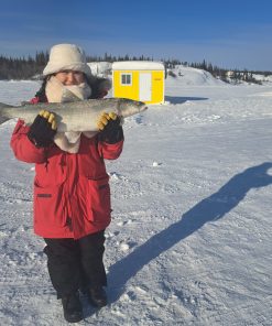 What to Expect: Enjoy ice fishing in the comfort of a warm cozy cabin, our guide will have everything prepared for you, all you have to do is catch the fish through consistent jigging. Have a fresh fish fry lunch on top of a frozen. Depending on Ice thickness, warm fishing tents is likely used during the month of November until Mid December. Fishing Cabins will be used once ice thickness is above 20 inches or 50cm. Weather permitting, guests will participate in a net pull to experience the traditional indigenous fishing experience.